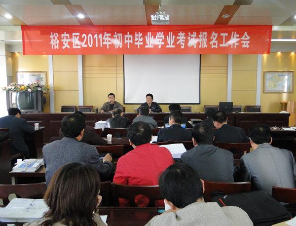 4月19日,裕安区召开2011年初中毕业生学业考试报名工作会议,各乡镇中心学校、区直属中学、市直属初中负责人和计算机操作员参加了会议,区教育局副局长李祥泂出席会议并讲话。会议由区教育局考试中心副主任陶涛主持。