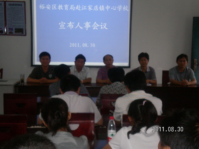 八月三十日下午,李祥泂副局长在学生资助中心主任林先来、考试中心主任王文学等陪同下,前往江家店镇中心学校宣读了裕安区教育局人事任免决定:决定卢亮杰同志任江家店镇中心学校副校长,高芳才同志任江家店镇中心小学校长。江家店镇中小学负责人及中心小学全体教师参加了会议。