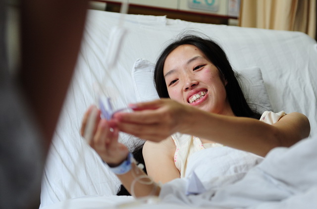 新华网重庆频道7月22日电(王北菲) 病床上的曹瑾,纤细的手臂上扎满了输液的针头,身体虚弱的陷在床里,一双大眼睛扑闪着环顾身边的每一个人。