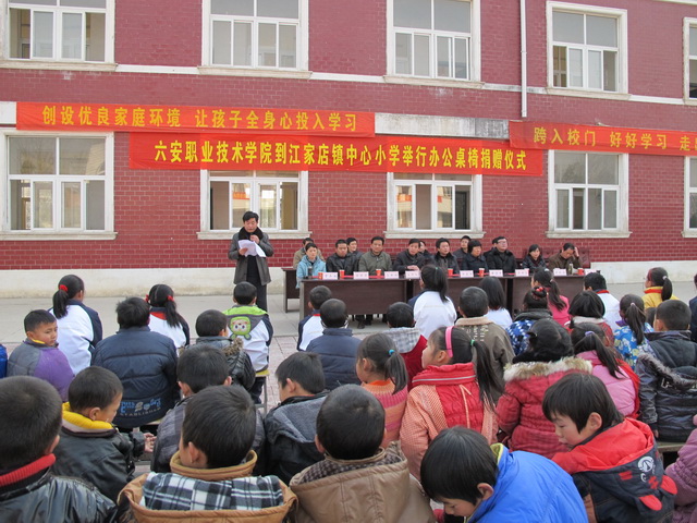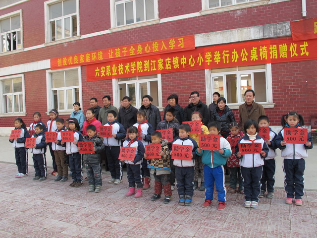 1月6日下午,六安职业技术学院向江家店镇中心小学捐赠办公桌椅暨省希望工程助学金发放仪式在江家店镇中心小学举行。