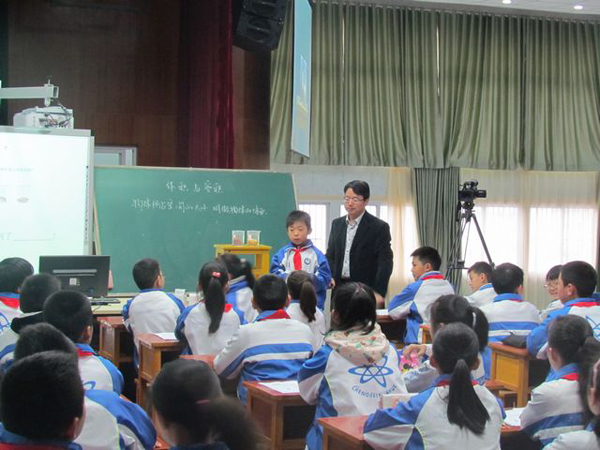 13日上午,由全国著名特级教师朱德江教授和城北小学青年教师郑文丰老师同台献艺,就《体积与容积》一课,进行同课异构。两位老师向大家展示了风格各异的课堂教学。郑文丰老师立足教材,课堂教学扎实有效,得到专家的充分肯定。朱德江教授则采用“先学后导”式教学,立足学生,通过师生、生生对话,让孩子自己解决自己提出的问题。他的课堂轻松活泼,交流互动看似信手拈来,实则匠心独运,使孩子们在思维的碰撞中迸发出智慧的火花。朱教授大气灵动的课堂,深刻地诠释了什么叫关注学生理解,让“双基”有灵性,让“四基”落地发芽,给我市数学课堂教学吹进一缕清新的春风。