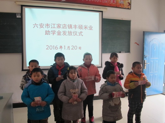 1月20日上午,六安市丰硕米业负责人魏全爱心资助江家店镇中心小学贫困学生助学金发放仪式在该校多媒体教室隆重举行。参加本次资助发放活动的有江家店镇中心学校关工委主任陈久跃、江家店镇少先总队辅导员卞仕勤、各班班主任以及受资助的学生,活动由陈久跃主持。