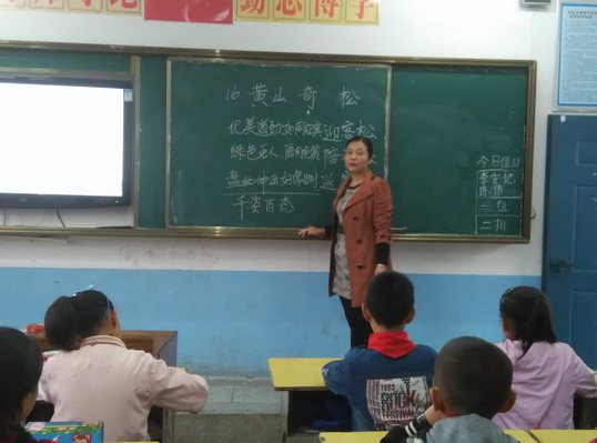 近日,江家店镇中心小学举行了一次语文教研活动。当天,王琴老师在五⑴班执教了《黄山奇松》这一课。