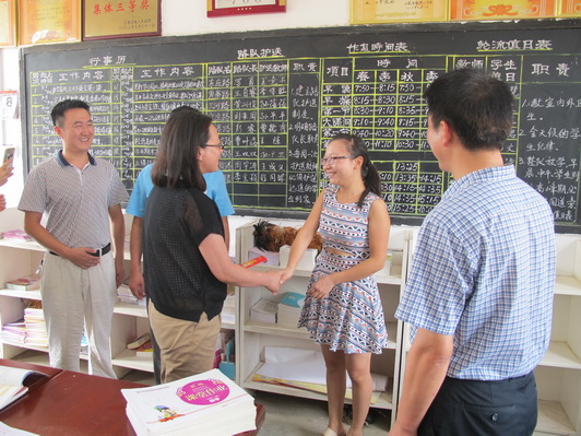 9月8日上午,裕安区委常委赵晓玉带领区商务局、区供销社、区台办、区畜禽办负责人一行在江家店镇党委书记魏璇、人大主席夏明星等陪同下先后赶往江家店镇挥手学校、林寨小学等地亲切看望并慰问了八名优秀教师和贫困教师代表,并向他们馈赠了六千元慰问金。
