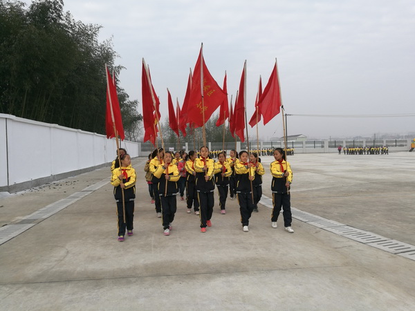 当天上午,操场上彩旗招展,伴随着《运动员进行曲》,所有班级都井然有序地聚集在教学楼前的操场上。开幕式上,高芳才校长首先致开幕词,运动员和裁判员代表也陆续宣誓。简短的开幕式后,各班级排着整齐的方队高举着班牌,喊着响亮的口号,斗志昂扬地通过了主席台,秩序井然的进入了比赛场地。