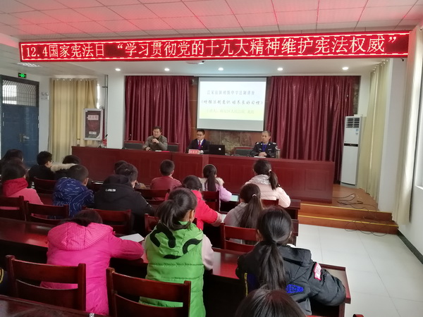 12月4日,在第四个国家宪法日到来之际。由裕安区人民法院、江家店镇司法所和中心学校联合举办的“学习贯彻党的十九大精神·维护宪法权威”法制教育活动先后在挥手小学、林寨小学和江家店初中隆重举行。